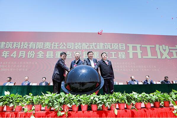 張祥安、許繼偉、高登榜、王建超共同觸摸開工球,項目啟動開工。隨后,領(lǐng)導嘉賓共同為項目開工奠基。