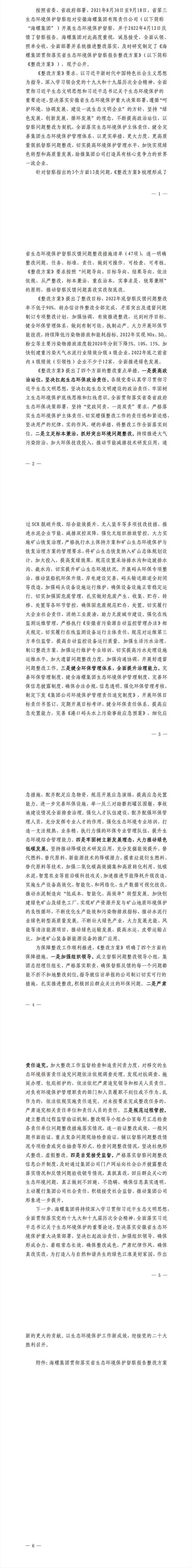 附件鏈接:海螺集團(tuán)貫徹落實省生態(tài)環(huán)境保護(hù)督察報告整改方案.pdf