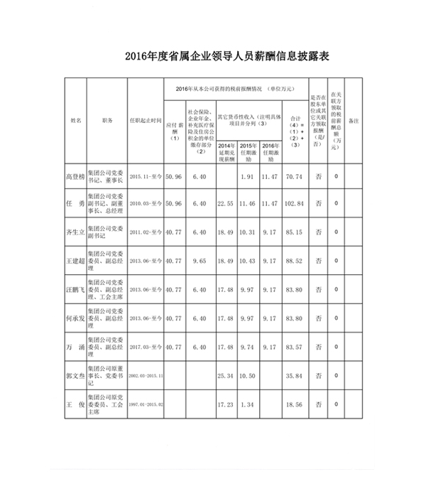 2016年度省屬企業(yè)領(lǐng)導(dǎo)人員薪酬信息披露