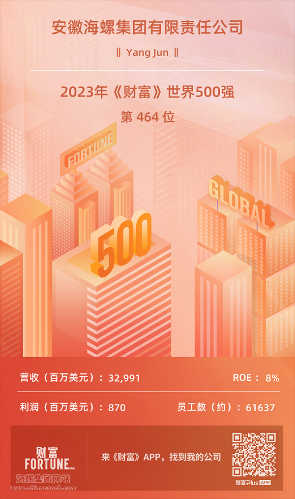 財富Plus APP于北京時間2023年8月2日與全球同步發(fā)布了最新的《財富》世界500強排行榜。海螺集團以32,991百萬美元的營收名列2023年《財富》世界500強第464位。