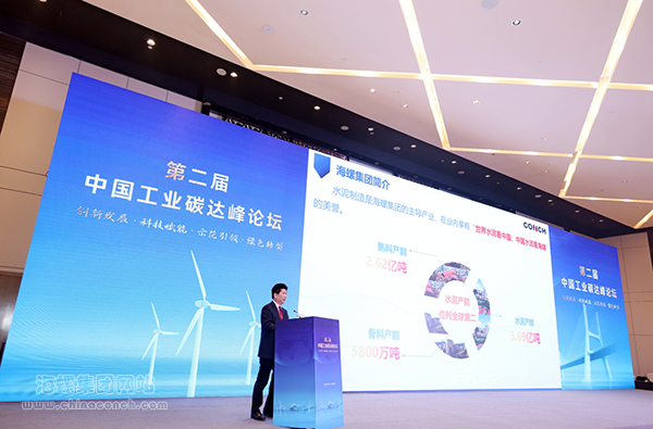 大會邀請了六位企業(yè)代表分享本公司在綠色低碳發(fā)展領(lǐng)域的實踐經(jīng)驗。楊軍代表海螺集團作《科技創(chuàng)新驅(qū)動建材行業(yè)綠色低碳循環(huán)發(fā)展》主題演講。
