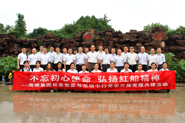 為深入學(xué)習(xí)貫徹習(xí)近平新時(shí)代中國特色社會主義思想和黨的十九大精神,慶祝中國共產(chǎn)黨成立97周年,2018年6月23日,海螺集團(tuán)機(jī)關(guān)黨委與中國銀行蕪湖分行黨委班子成員及部分黨員代表攜手同行,赴中國共產(chǎn)黨的誕生地——浙江嘉興南湖開展黨建共建活動(dòng),追尋紅色足跡,重溫入黨誓詞,接受黨性教育,大力弘揚(yáng)“紅船精神”,激發(fā)“紅色力量”。