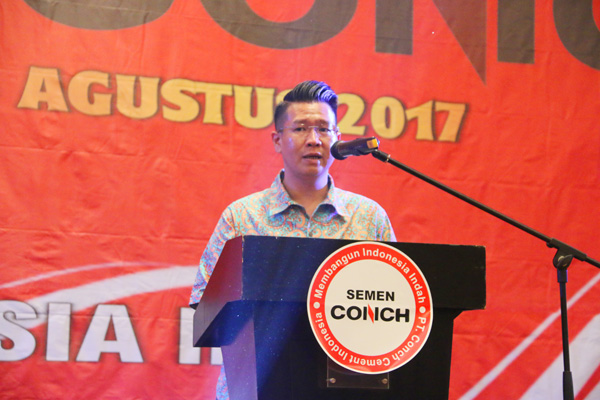 籌辦本次產(chǎn)品推介會的主要客戶CV.SUMATRA BAJA INDONESIA負(fù)責(zé)人Koyo先生致辭。他首先對海螺水泥的整體實(shí)力和在楠榜地區(qū)快速發(fā)展表達(dá)了欽佩,并通過列舉“海螺水泥捐建當(dāng)?shù)厍逭嫠隆薄昂B菟嗔x務(wù)開展當(dāng)?shù)貏诠な褂盟嗉寄芘嘤?xùn)”等實(shí)例,對海螺水泥投身印尼、建設(shè)印尼表示了贊揚(yáng)。他希望能與海螺水泥進(jìn)一步深化合作,通過共同努力,讓楠榜地區(qū)更多的商戶認(rèn)可海螺、選擇海螺。