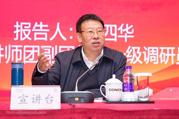 按照省委統(tǒng)一部署,12月23日上午,學(xué)習(xí)貫徹黨的十九屆六中全會(huì)精神“舉旗幟·送理論”省級(jí)示范性宣講報(bào)告會(huì)在海螺集團(tuán)公司舉行。省級(jí)宣講團(tuán)成員、省委宣講團(tuán)副團(tuán)長(zhǎng)、一級(jí)調(diào)研員年四華作宣講報(bào)告。集團(tuán)公司領(lǐng)導(dǎo)任勇、齊生立、王建超、吳小明、丁鋒等出席報(bào)告會(huì)。