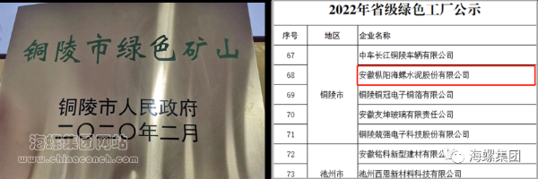 樅陽(yáng)海螺嚴(yán)格貫徹習(xí)近平生態(tài)文明思想,牢固樹(shù)立“呵護(hù)環(huán)境,協(xié)調(diào)發(fā)展,全力打造一流生態(tài)文明企業(yè)”環(huán)保理念,早在2009年就通過(guò)環(huán)境管理體系認(rèn)證,連續(xù)多年獲得安徽省“環(huán)保誠(chéng)信企業(yè)”、樅陽(yáng)縣“環(huán)境保護(hù)先進(jìn)集體”等榮譽(yù)稱號(hào),公司石灰石礦山通過(guò)銅陵市級(jí)“綠色礦山”評(píng)審并取得證書,于2019年通過(guò)國(guó)家級(jí)“綠色礦山”遴選,2022年,公司被評(píng)為安徽省級(jí)“綠色工廠”。